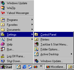 2. Click on Start Menu -> Settings -> Control