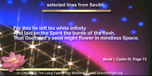 All extracts and quotations from the written works of Sri Aurobindo and the Mother and the Photographs of the Mother and Sri Aurobindo are copyright Sri Aurobindo Ashram Trust, Pondicherry -605002 India. |