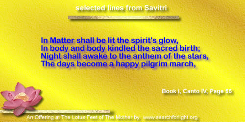 All extracts and quotations from the written works of Sri Aurobindo and the Mother and the Photographs of the Mother and Sri Aurobindo are copyright Sri Aurobindo Ashram Trust, Pondicherry -605002 India. |