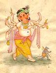 One day, the child Ganesh diverted himself in tormenting a cat, pulling his tail and rolling him on the ground. All of us know that children are able to injure animals but are not aware to act badly. Just a moment after, he left the cat peaceful and went away. He even did not think about what he had done. He arrived at mount Kailash to meet again his mother Pārvatī. He found her badly suffering, covered with wounds and dust. He asked her about what happened; she replied that he was responsible of this situation. Indeed, she was, just before, that cat tormented by Ganesh. This story teaches us that all the living beings are of divine essence. If we injure a living creature, one of our companions, human or animal, we injure God Himself. Ganesh learned this lesson and we also must learn it during our lifetime. |