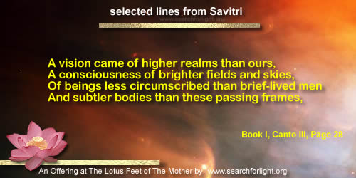 All extracts and quotations from the written works of Sri Aurobindo and the Mother and the Photographs of the Mother and Sri Aurobindo are copyright Sri Aurobindo Ashram Trust, Pondicherry -605002 India. |