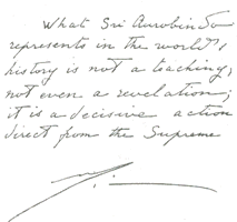 Sri Aurobindos' represents in the worlds' history is not a teaching,